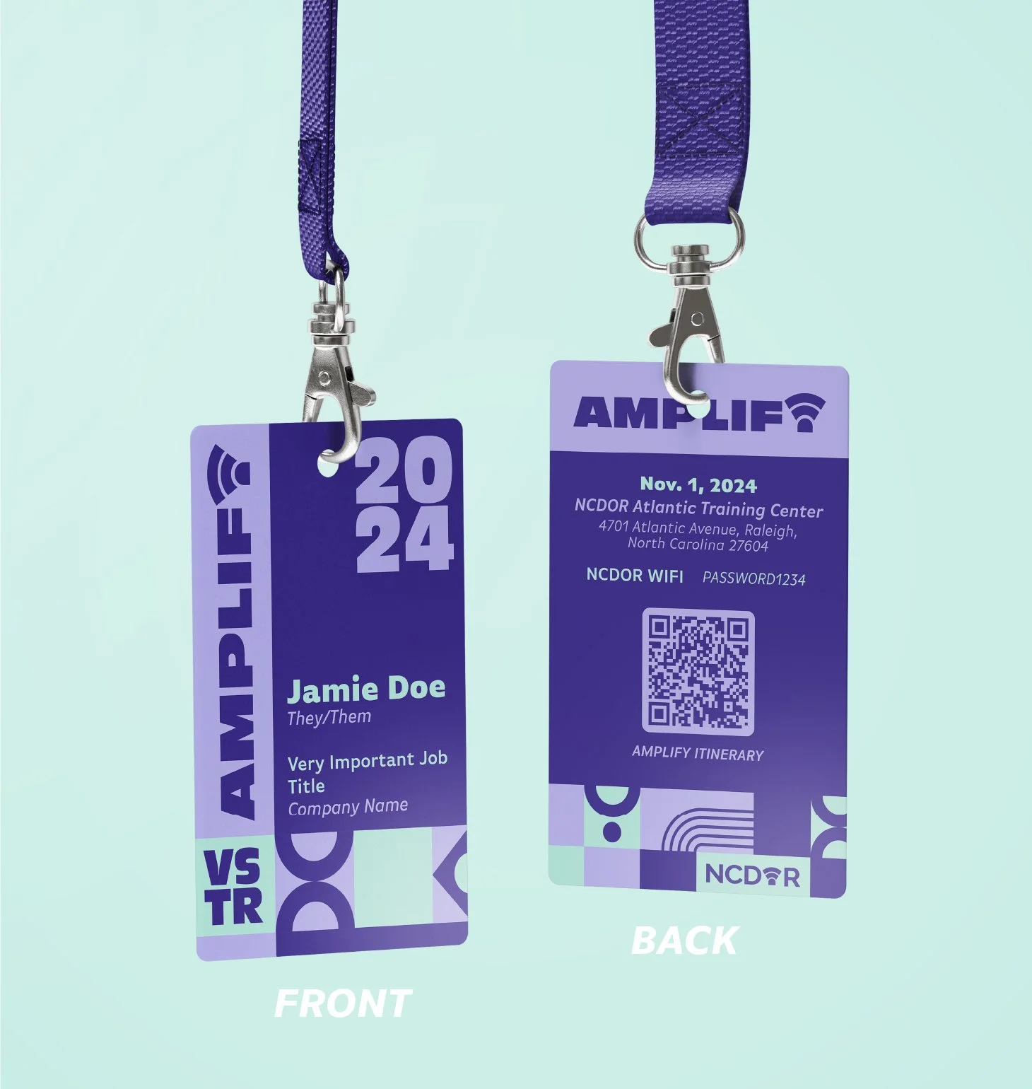 The AMPLIFY giveaway packs were thoughtfully curated to enhance the attendee experience. Each pack included branded lanyards, notepads, custom totes, and various print resources, all designed to reflect the conference’s bold visual identity and commitment to meaningful connections.